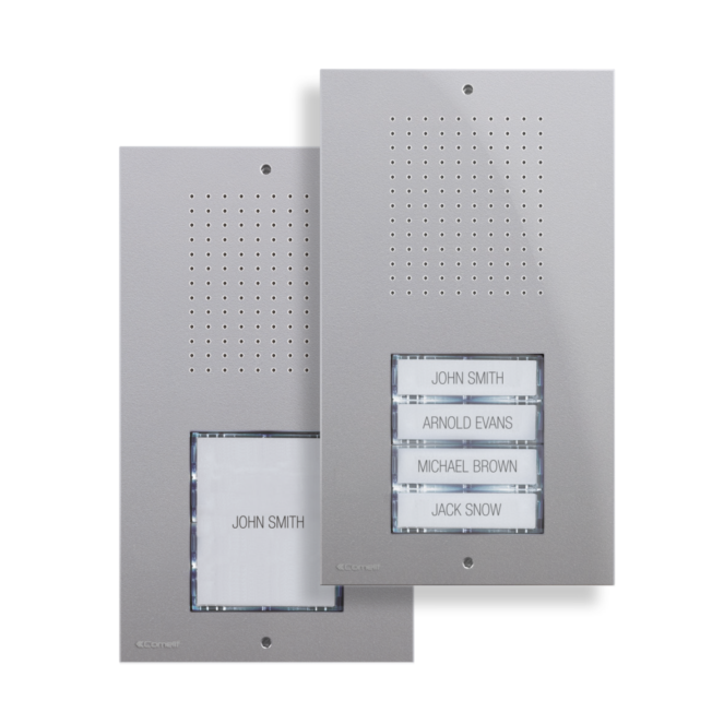 The new Comelit monolithic entrance panel features an attractive and minimalist style, fully complementing modern architecture and showcasing the technological innovation that really sets it apart.
